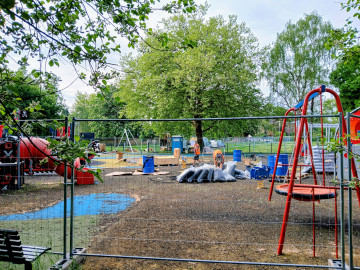 Work started on 7th April and was completed in time for the planned re-opening on 9th May. To keep everyone safe, the play area was closed whilst the work is taking place. The contractor's temporary roadway from the Upper Grosvenor Road entrance has minimised any damage to the grassed area, and the fencing is now removed.